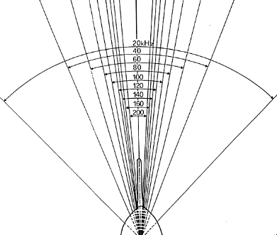 Die höchsten Frequenzen werden entlang der Körperachse erreicht. Nach außen hin nimmt die Auflösung ab. Deshalb bewegen Delphine oft den Kopf hin und her wenn sie Objekte genauer untersuchen: sie tasten dann mit ihrer feinsten Auflösung Details ab. Doch nicht immer sind hohe Frequenzen günstig. Tiefe Töne pflanzen sich in Wasser leichter also weiter fort als hohe. Das ist gut für große Objekte die weit entfernt sind. |